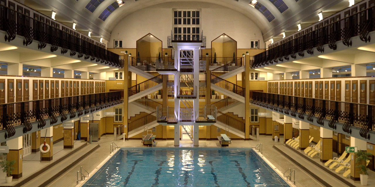 Ein statischer Blick auf die leere Schwimmhalle des Wiener Amalienbads. Andauernde Stille, die schließlich durch die präzis choreografierte Performance eines Schwimmer/innenensembles visuell und akustisch in Bewegung gerät: quietschende Badelatschen, plätscherndes Wasser, Schwimmsounds, zuschlagende Türen, federnde Sprungbretter, das Aufklatschen und Eintauchen von Körpern. Streng getaktete, synchronisierte Aktionen und symmetrische Formationen der Performer/innen erzeugen eine rhythmische Klangkomposition, ein abstraktes Musikstück, das sich in der weitläufigen gekachelten Architektur theatral entfaltet, bis es schließlich wieder verebbt. Plätscherndes Wasser, quietschende Badelatschen, Stille, eine leere Schwimmhalle – die Konzertierung eines Palindroms durch Körpereinsatz: liquid, sonic, fabelhaft. (Katalogtext Diagonale, mk)