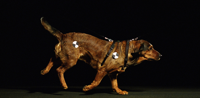 In RaumZeitHund wird ein vor fast 140 Jahren unternommener Versuchsaufbau von Edward Muybridge reinszeniert: der auf 24 Fotoplatten aufgezeichnete Galopp eines grauen Windhundes aus den 1870ern wird nun von einer braunen Bracke durchgeführt - in Farbe, mit einer 35mm Highspeed-Kamera aufgenommen und durch digitales Motion-Tracking stabilisiert. Während die ursprünglichen Aufnahmen eine vermeintliche Überlegenheit des "maschinellen Auges" demonstriert, befasst sich "RaumZeitHund" mit der Modellierbarkeit desselben und dem Absolutheitsanspruch, der von solchen Bewegungsbildern ausgeht. Was sich anfangs in den ruhigen Lauf des Hundes wie vereinzelte Fehler einmengt, wird mehr und mehr zum System des Filmes; scheinbare Störungen der Kontinuität der Bewegung verweisen immer stärker auf den Produktionscharakter der Illusionsmaschine Film. Ohne die Bewegung zu zerstören, folgt die Reihung der Bilder nicht länger der Chronologie der Aufnahmen, sondern mathematischen Funktionen.