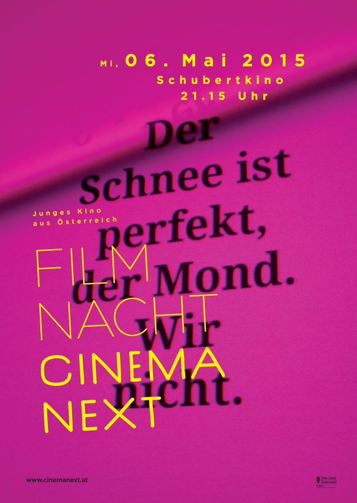 Cinema Next tourt im Mai bereits zum 8. Mal durch die Programmkinos und präsentiert eine fein sortierte Auswahl an aktuellem jungen Filmschaffen. Ob Kurzspiel- und dokumentarfilme, Animationen, Experimentalfilme oder Musikvideos: in den Kurzfilmprogrammen zeigen die Cinema Next Filmnächte das breite Spektrum und die hohe Qualität des jungen österreichischen Films.