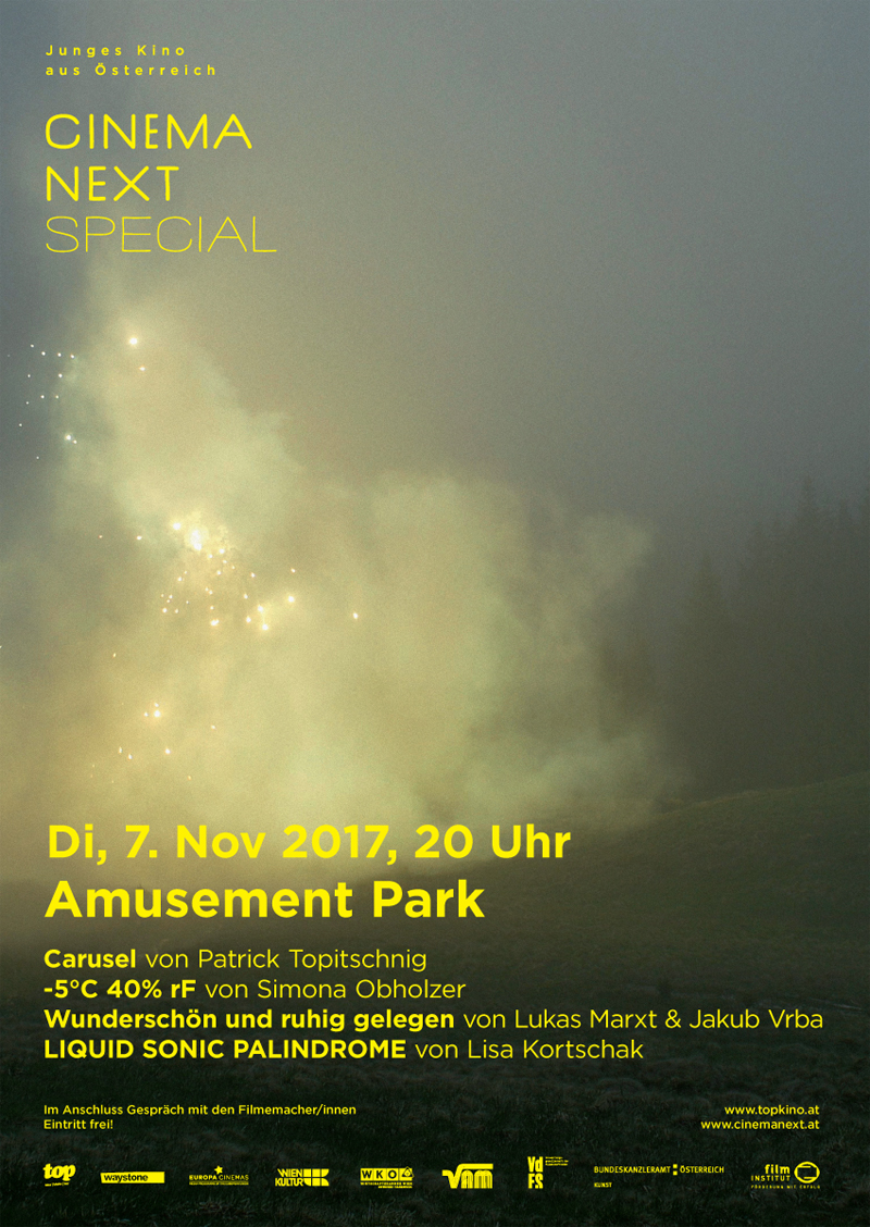 Vier Filme über Amüsierstätten oder Orte, die zu solchen werden: Simona Obholzer und Patrick Topitschnig beobachten Freizeitorte, die am und im Berg künstlich angelegt wurden. Lukas Marxt und Jakub Vrba legen gleich selbst Hand an und beleben eine ruhige Waldlandschaft durch Interventionen. Auch Lisa Kortschak interveniert und gibt einem Schwimmbad eine umfassende Choreografie. Amusement Parks sind überall!