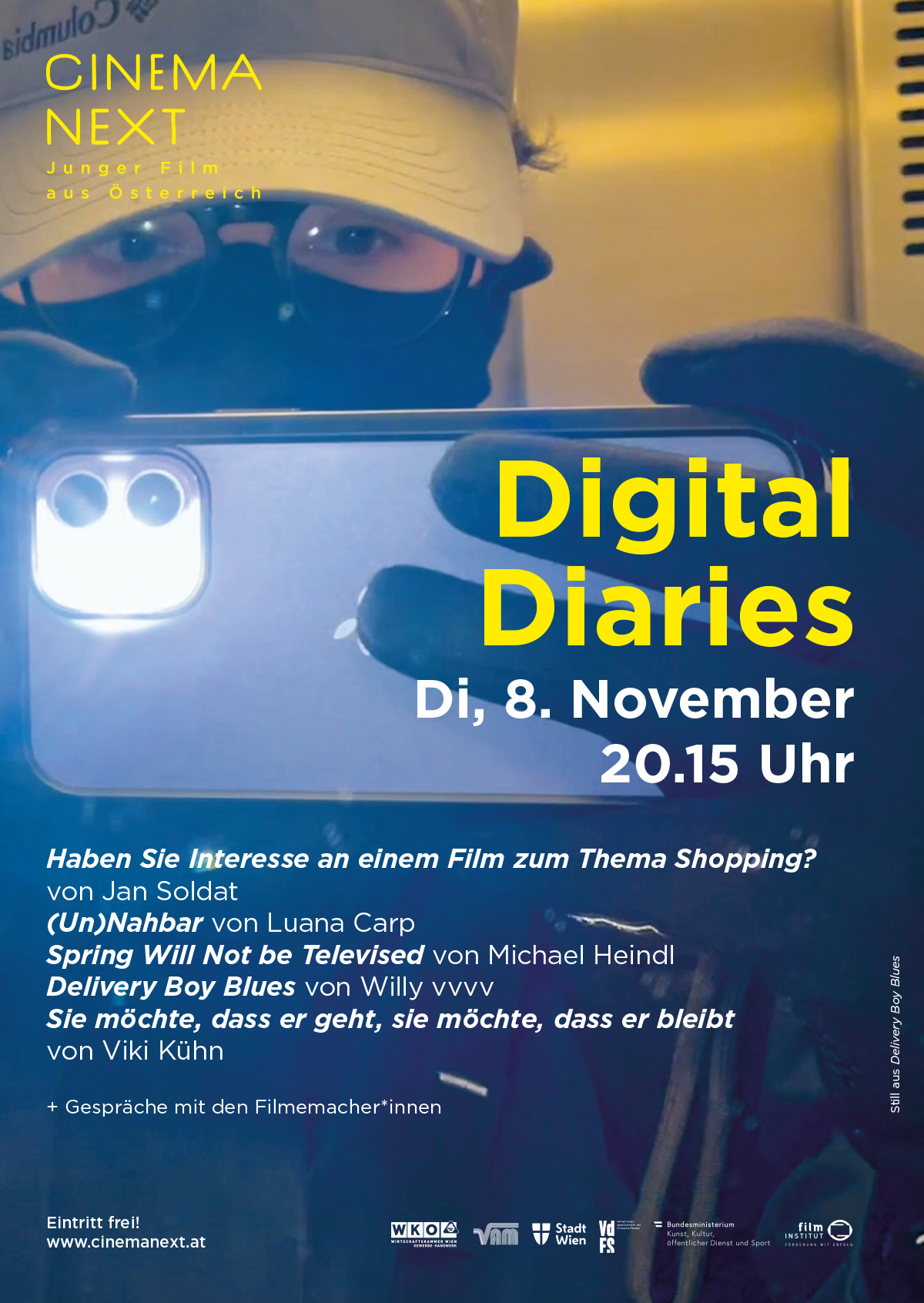 In Haben Sie Interesse an einem Film zum Thema Shopping? filmt Jan Soldat unmittelbar eine kurze Begegnung in einem Kaufhaus. Un(nah)bar von Luana Carp ist einer der Filme, die im Lockdown entstanden sind und versuchen, das seltsame Lebensgefühle dieser noch allzu nahen Vergangenheit einzufangen und zu reflektieren. Auch Spring Will Not Be Televised von Michael Heindl setzt sich filmisch mit diesem Lockdown auseinander, richtet den Blick aber nach außen durch die Fenster anderer. Delivery Boy Blues von Willy vvvv fängt Wien aus der Perspektive eines Fahrradboten ein und gibt dabei sowohl Einblicke in die schwierigen Arbeitsverhältnisse des Berufs sowie in eine persönliche Krise. Schließlich richtet Sie möchte, dass er geht, sie möchte, dass er bleibt von Viki Kühn die Kamera auf intime Momente einer schwierigen menschlichen Beziehung, die durch psychische Krankheit gefährdet wird.