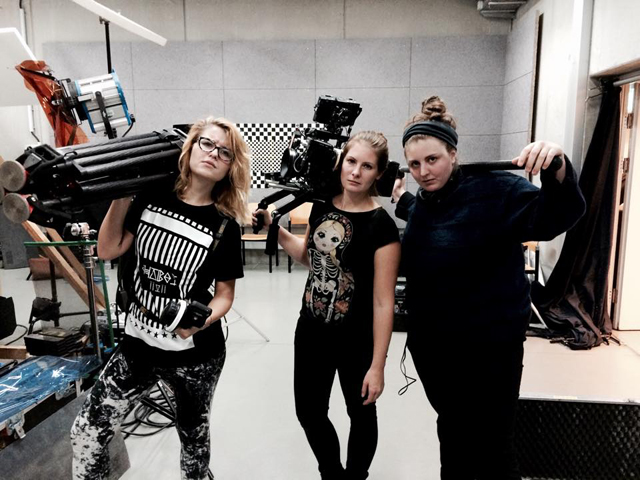 Weder durch schwere Technik noch durch zweifelnde Männer einzuschüchtern: Das weibliche Produktionskollektiv Jasmin Baumgartner, Anna und Theda Schifferdecker (Tonmeisterin).