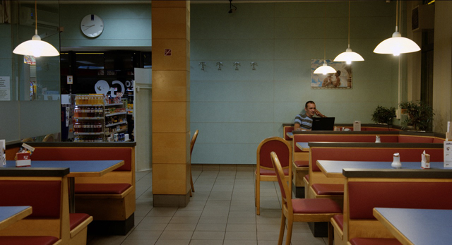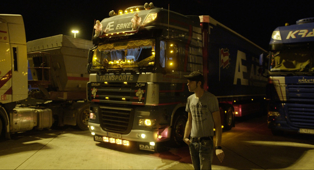 „Manche Regisseure wissen, dass eine Fahrt bei einem Meter anfängt und bei drei Metern aufhört. Aber es gibt auch welche, die erst vor Ort nach Lösungen suchen. Ich finde beides spannend.“ Bei Rast(in Postproduktion, 55 min, R: Iris Blauensteiner) waren Regie und Kamera sich schnell einig, dass es einen kontinuierlichen klaren und strengen Bildstil geben wird: Vorgegeben auch durch die Räume, die Linien der LKW und den Stillstand der Fahrzeuge. Es wurde fast ausschließlich vom Stativ gedreht. „Wir wussten zwar nicht, was passieren wird, aber es war klar, dass alles am Platz passieren wird.“