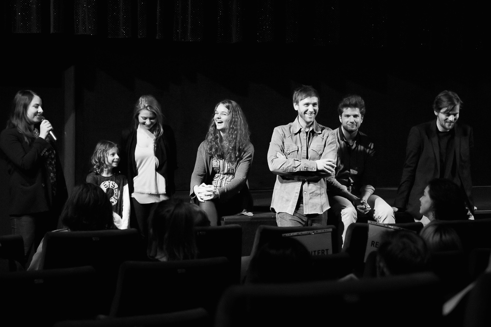 Zwölf Jahre später: Lisa (Mitte) mit Filmteam und ihren Studienfreund*innen Alexandra Makarová (ganz links), Georg Weiss (rechts von Lisa) und Sebastian Schmidl (ganz rechts) beim Q+A zu
