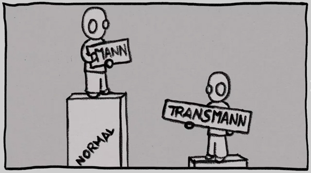 Er hat dabei die Erfahrung gemacht, vor der Kamera über sein eigenes Leben als Trans*mann zu sprechen, „dabei extrem viel herzugeben“ und alles Gesagte dann den Filmemacherinnen zu überlassen. Und immer wieder hat er sich nach einem Interview gedacht: „Scheiße, was hast du gesagt?“ „Und dann wird, was du gesagt hast, noch geschnitten. Von einer Stunde Gespräch bleiben zwei Sätze übrig. Das ist einfach arg. Das ist eine wichtige Erfahrung: sich hinzusetzen vor so eine Kamera und zu merken, was das mit einem macht.“