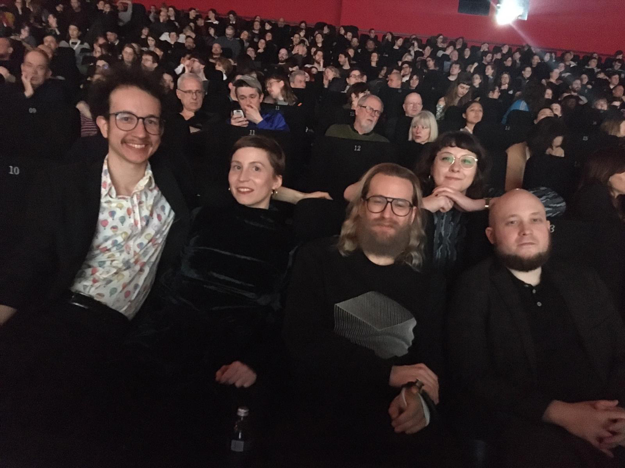 Robin, Michael (vordere Reihe) und Adina Camhy (die die Musik zum Film gestaltete) und Marija Milovanovic von Lemonade Films (hintere Reihe) während der Premiere von