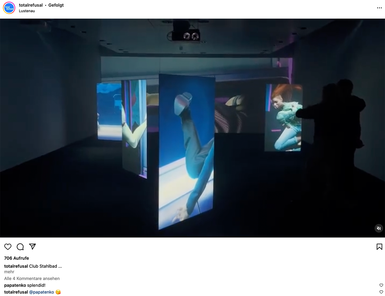 Gemeinsam gespielt und an Ideen getüftelt wurde also bereits, das Kollektiv war aber noch nicht geboren. Offiziell geschah das 2018 in Zagreb, wo Susanna schon zwei Jahre zuvor im Rahmen einer Residency ausgestellt hatte und Leon nun auf sie folgte. Gemeinsam mit Robin hatte er gerade die Arbeit an Operation Jane Walk fertiggestellt. Da das aber nicht ausreichte, zog er sich mit Michael und Robin eine Woche zurück, um gemeinsame Arbeiten und Ideen für den Gruppenauftritt zu kreieren. Außerdem brauchten sie noch einen Namen – die Wahl fiel auf Total Refusal, inspiriert von einem französischen Kollektiv der 1940er und -50er.