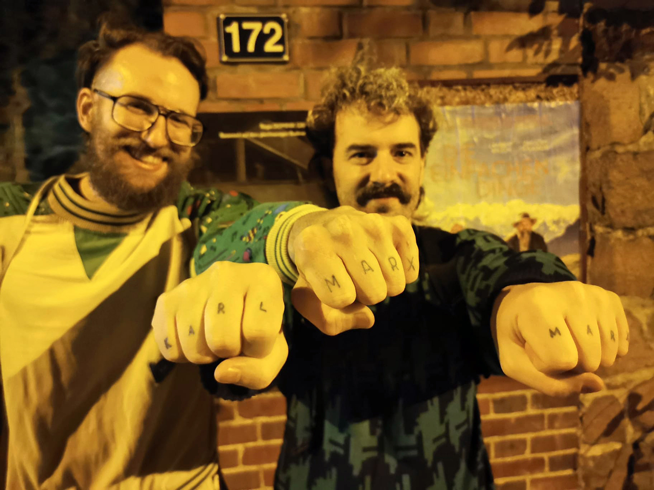 Michael (links) und Leon mit ihrer Hommage an Karl Marx. © Total Refusal