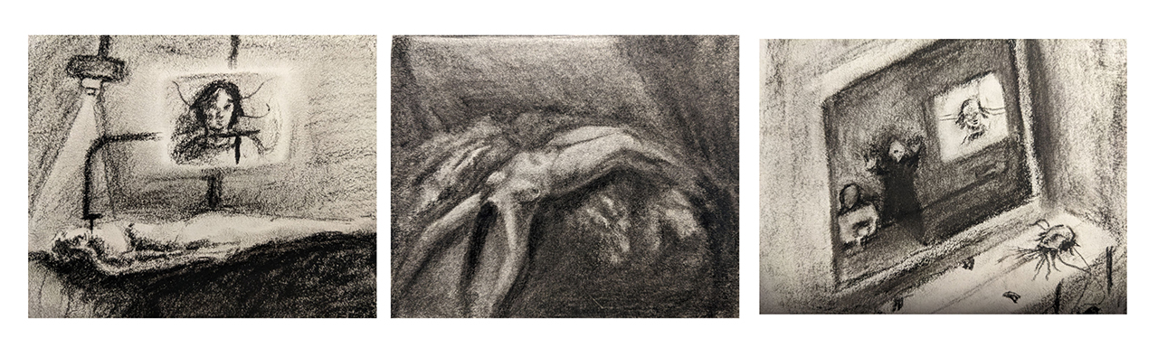 Die Gestalt des Pygmalion aus der griechischen Mythologie und Mary Shelleys Frankenstein als literarische Referenzen (wie du es in deiner Bewerbung beschreibst), Dekapitation als Spielfilmthema ... Bereits in deinem vorherigen animiert-gespielten Kurzfilm Die Versteckspielparabel thematisierst du ähnliche Motive: Körper, Verwandlungen, Identitäten, Doktorexperimente ... Was interessiert dich an diesen Prozessen und Praktiken?